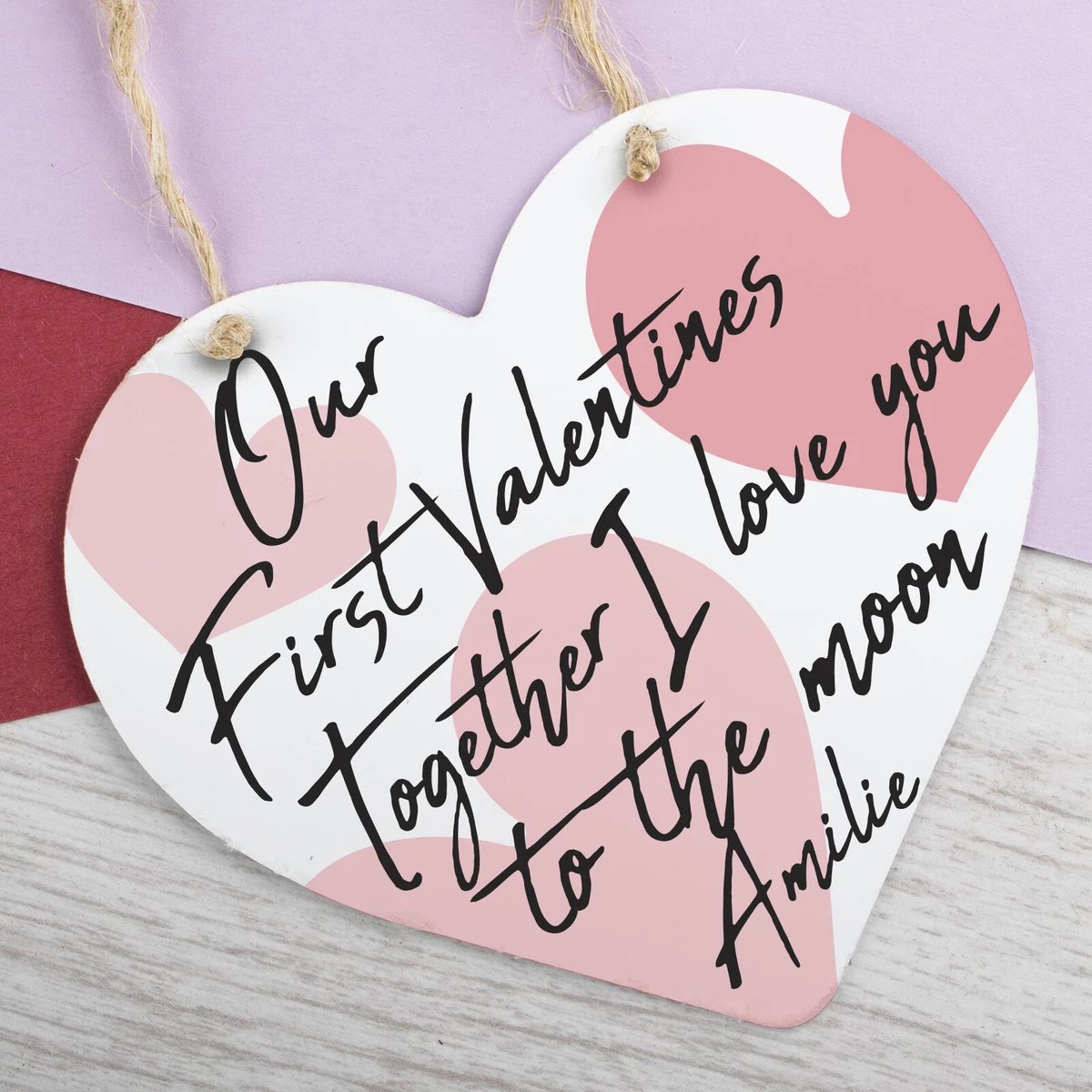 Personalised First Valentines Hanging Sign Gift Girlfriend