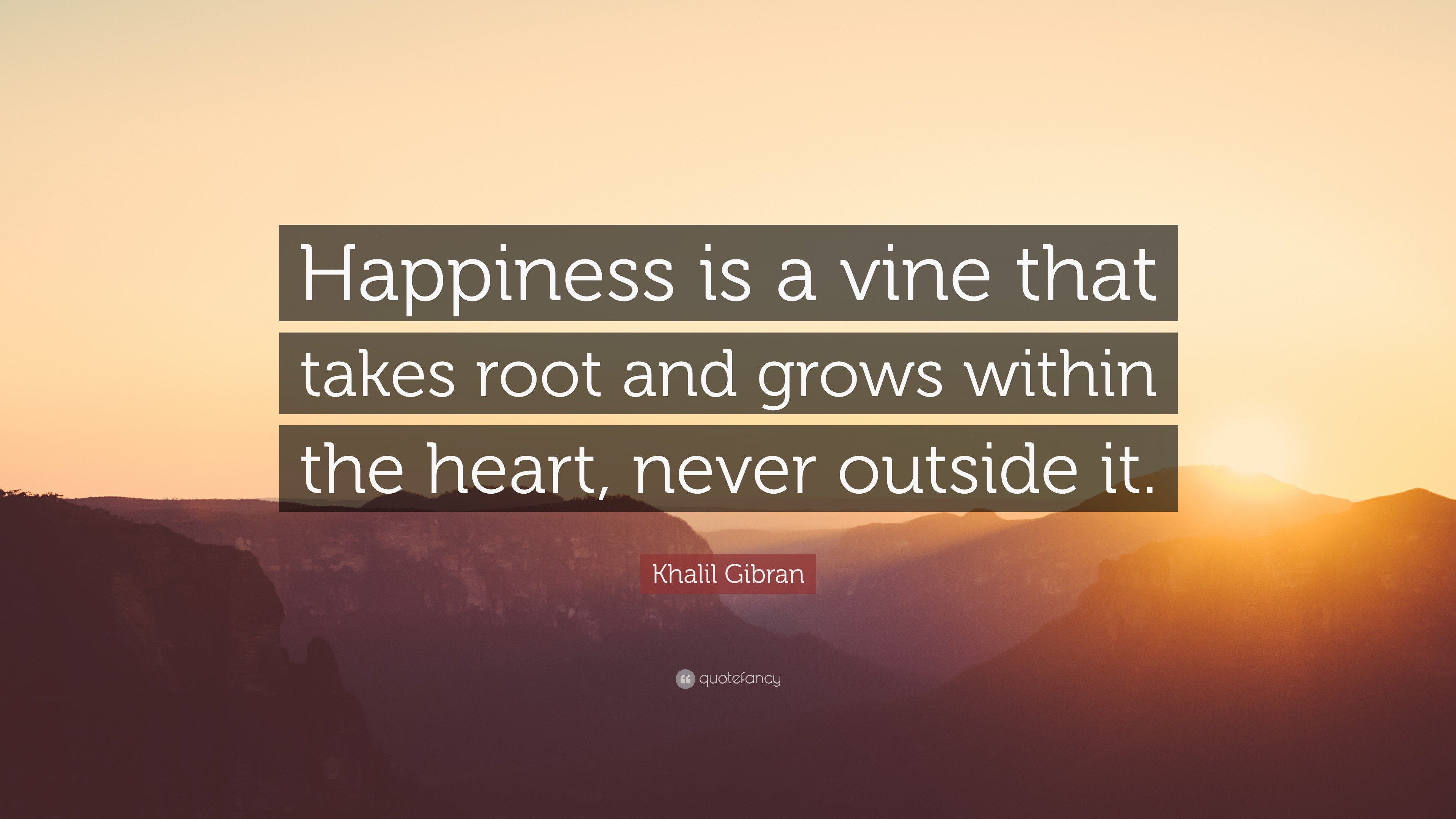 Khalil Gibran Quote: “Happiness is a vine that takes root and