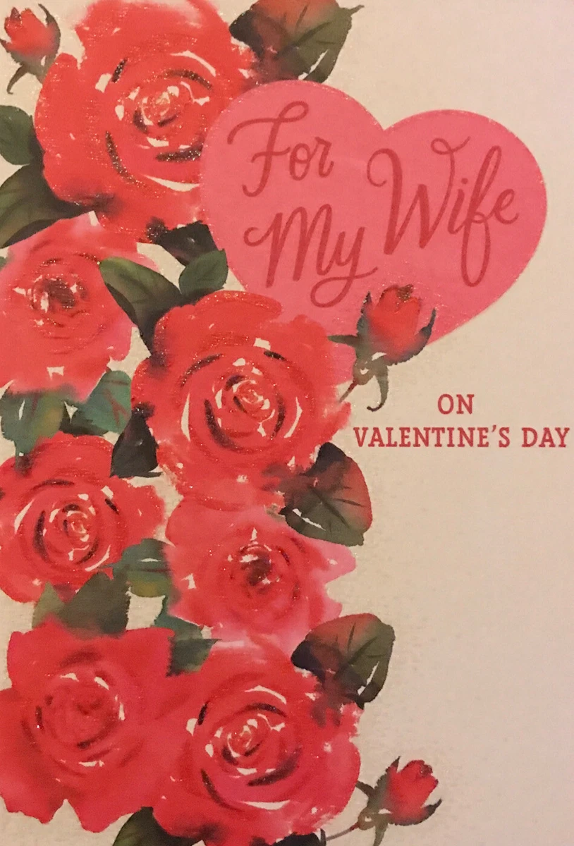 Happy Valentine’s Day, For My Wife, Glitter Roses And Hearts